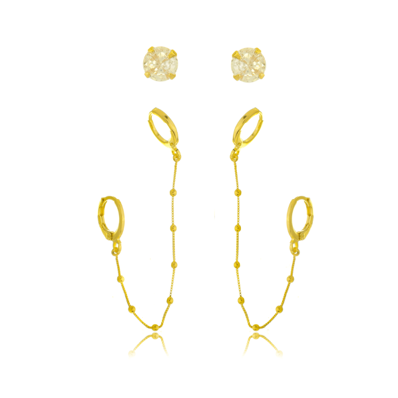 Brinco trio argola zirconia banhado a ouro 18kOs brincos são um arraso, com seus designers modernos tornam-se únicos! Muito utilizados em diversas ocasiões e estações. Esses acessórios ajudam a destacar o rosto e trazer um toque de luxo para a produção.