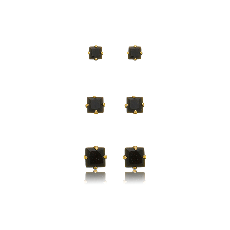 Trio brincos, de pino com tarraxa, banhados a ouro 18k, sendo em formato quadrado, em tamanhos grande, médio e pequeno, cravados com zircônia na cor cristal, trio extremamente lindo e elegante!Os trios são um sucesso, com certeza peças indispensáveis na hora incrementar seu porta-joias, combinando um mix de emoções, são Ideais para aquele look bem despojado até para o mais casual, combinando com qualquer estação e composição, são os queridinhos no mundo das semijoias e estão dentre os mais vendidos e requisitados!